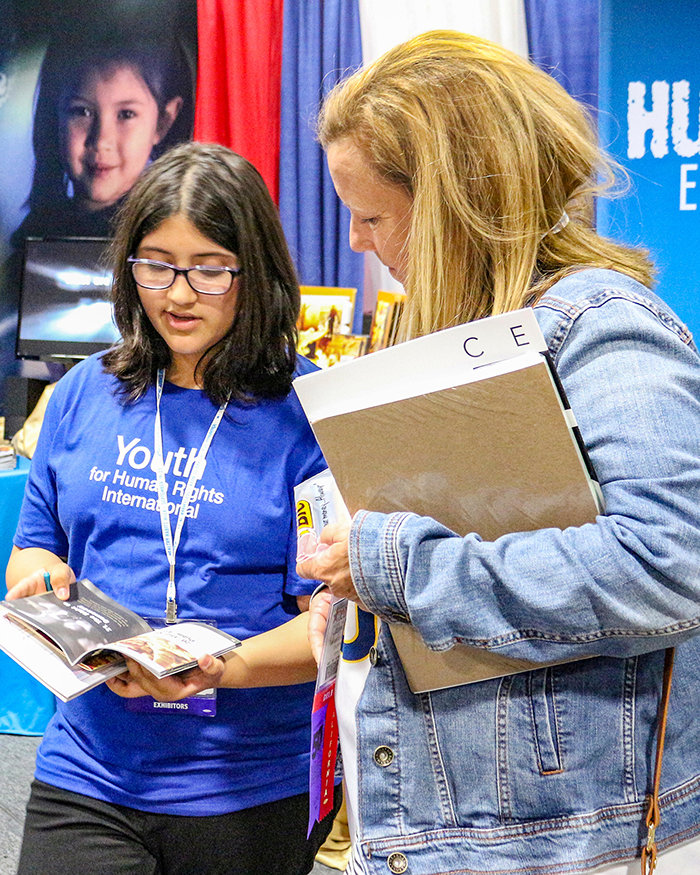 Conventions are a perfect chance to reach like-minded organizations. United for Human Rights (UHR) chapters attend these around the world and man resource booths. Conventions range from those of social science teachers to human trafficking symposiums, where we provide free educational materials and meet and collaborate with other leaders in the field of human rights.